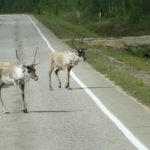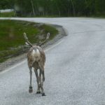 Die Europastraße E75 ist jetzt nur noch eine normale Bundesstraße im mittelprächtigen Zustand. Die Birke scheint hier oben der einzige Laubbaum zu sein. Die gibt es hier reichlich neben Fichten und Kiefern. Nach dem wir kurz hinter Inari die E75 zugunsten der Straße 971 verlassen haben kehrt sich das Verhältnis von Wald und Wasser um. Einfach traumhaft. Zum Glück laufen die Rentiere sehr viel gemächlicher als unsere Rehe. So schreckhaft unsere Tierchen zu Hause sind um so gemächlicher laufen die Rentiere auf der Straße in Finnland. Viel störender waren die Rentiertouristen, die den Verkehr aufgehalten haben. Da ist es auch zu verkraften, dass die Straße ihren mittelprächtigen Zustand noch etwas nach unten korrigiert.