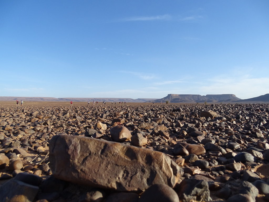 Weiter geht es das gestern erkundete Flussbett entlang durch die Steinwüste. So geht es ein paar Stunden Fuß vor Fuß.