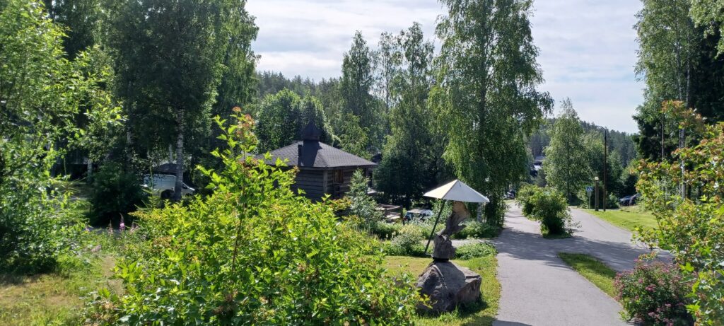 Nach einer kurzen Erklärung, was wie wo, starten wir auch schon erst mit einem Spaziergang durch das Ressort. Das ursprüngliche Gebäude gibt es schon seit 1658 und das Resort wird in der 11. Generation geführt. Die ganze Landschaft ist häufiger zwischen schwedischer, russischer und abschließend finnischer Zugehörigkeit geschwankt. Unser Spaziergang geht dann nahtlos in eine Wanderung durch die Umgebung über.