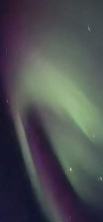 Leider haben wir die Strelizie nicht so richtig auf das Bild bekommen. Das fotografieren der Lichter ist ja auch so eine Sache. Dafür gibt es aber andere, zum Teil sogar farbenfreudige, Gebilde. Diese Ausprägung der Nordlichter ist wohl nicht so häufig, erfahren wir. Diese sind auf einer Magnetfeldlinie, die direkt über und ist entstanden. Da haben wir ja richtig Glück. Wir können uns kaum von diesen herrlichen Anblick trennen, müssen aber leider wieder zum Bus. Das war beeindruckend.