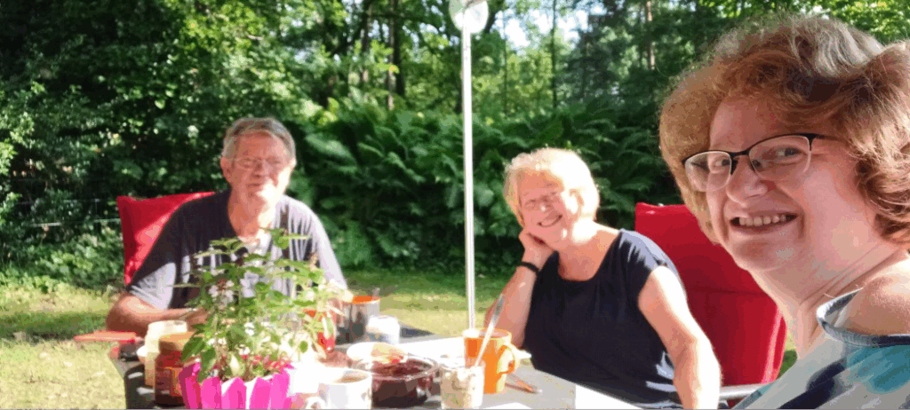 Die Sonne scheint und wir können den Tisch an der frischen Luft decken. Es gibt Selbstgemachtes wie Himbeer-Gelee, Fleisch-, und Heringssalat. Wir haben uns sogar an Körner -, Nuss-Brötchen und Scones versucht. Alles sehr lecker.