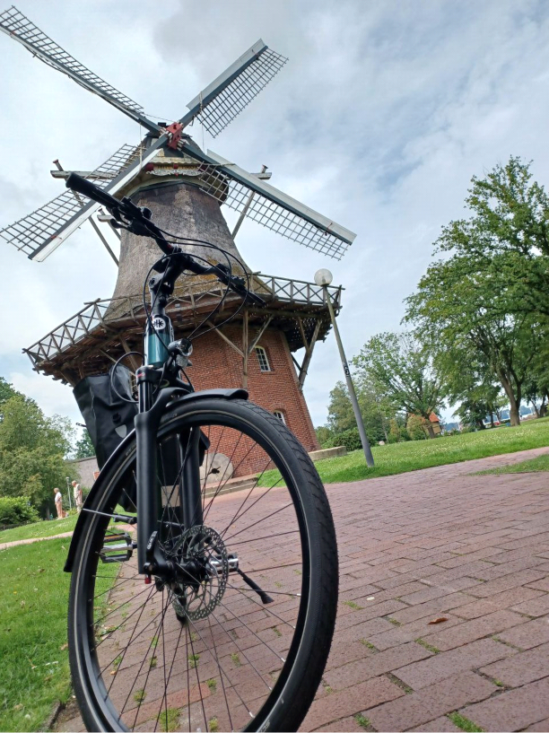 Wir sind ja mit dem Rad unterwegs und da sind Entfernungen relativ. Also los geht es. Die Rügenwalder Mühle hat übrigens gar keine Wurstzipfel an ihren Flügeln. 😂