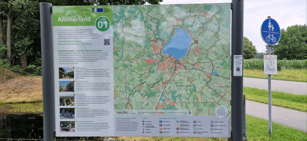 Beim Foto-Stopp an der Mühle stellen wir fest, dass wir auf einem guten Weg sind das Zwischenahner Meer zu umrunden. Warum eigentlich nicht, nun sind wir schon mal da.