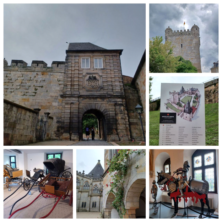 Wir wandern die Erhebung hoch zur Burg. Kurze Überlegung… Drei Erwachsene bitte. Es ist Anne leider nicht gelungen uns als Kinder zu verkaufen, dafür gab es aber ein Lächeln bei der Verkäuferin. Schon stehen wir im Innenhof. Ist doch sehenswert. Wir besichtigen alle offenen Räumlichkeiten und erfahren einiges über Ritter, Geister und vor allem die von Bentheim.