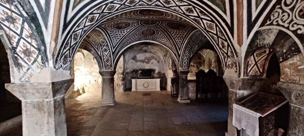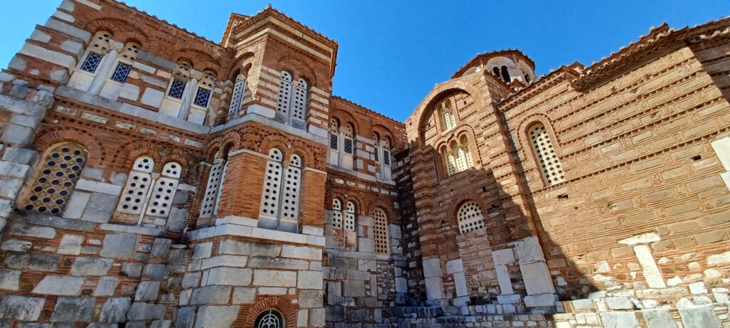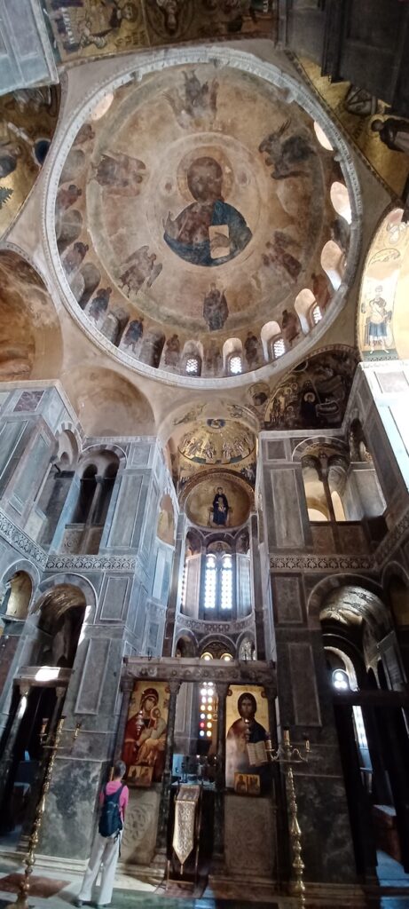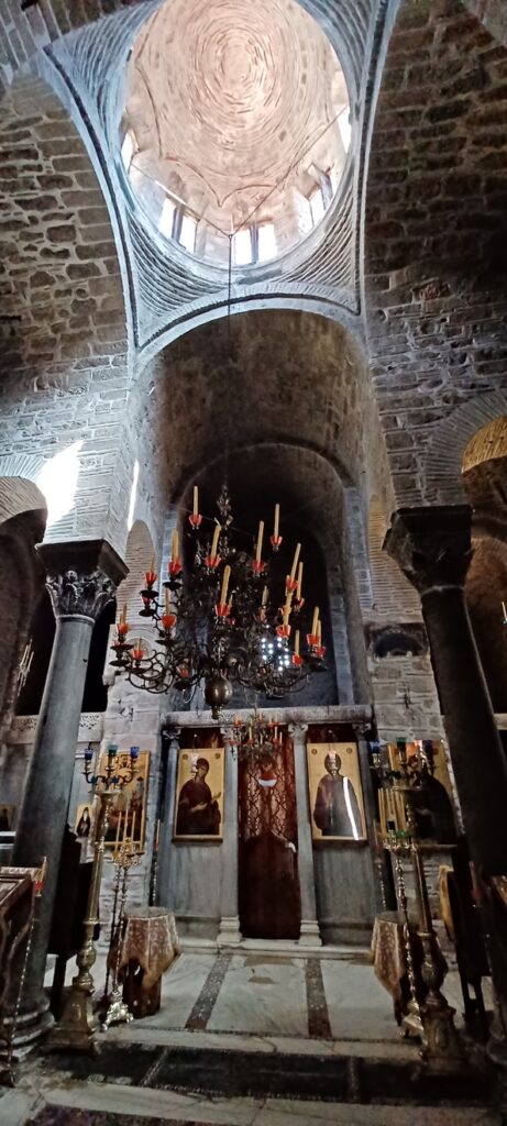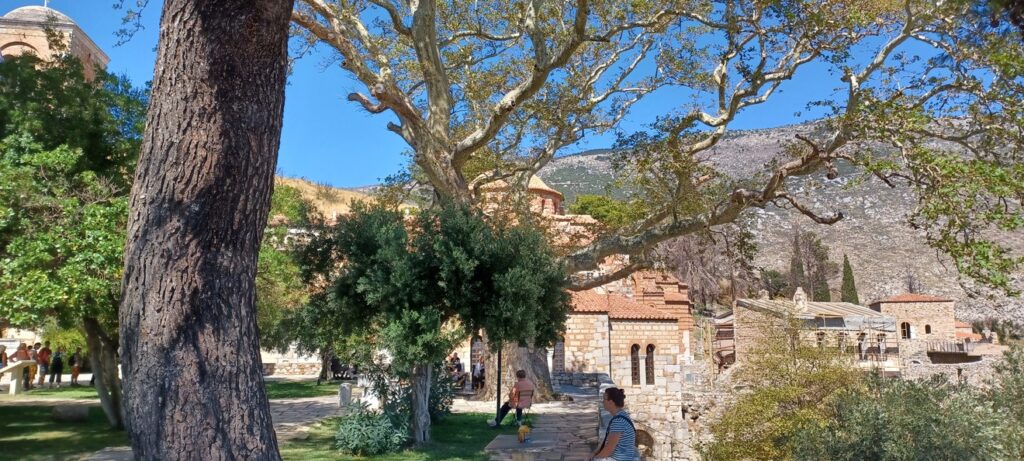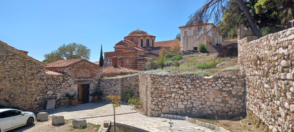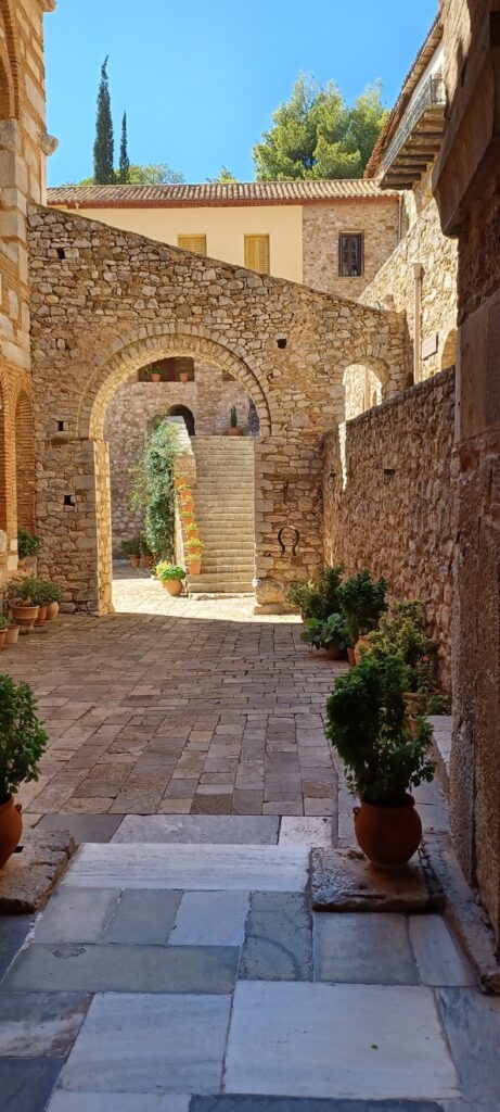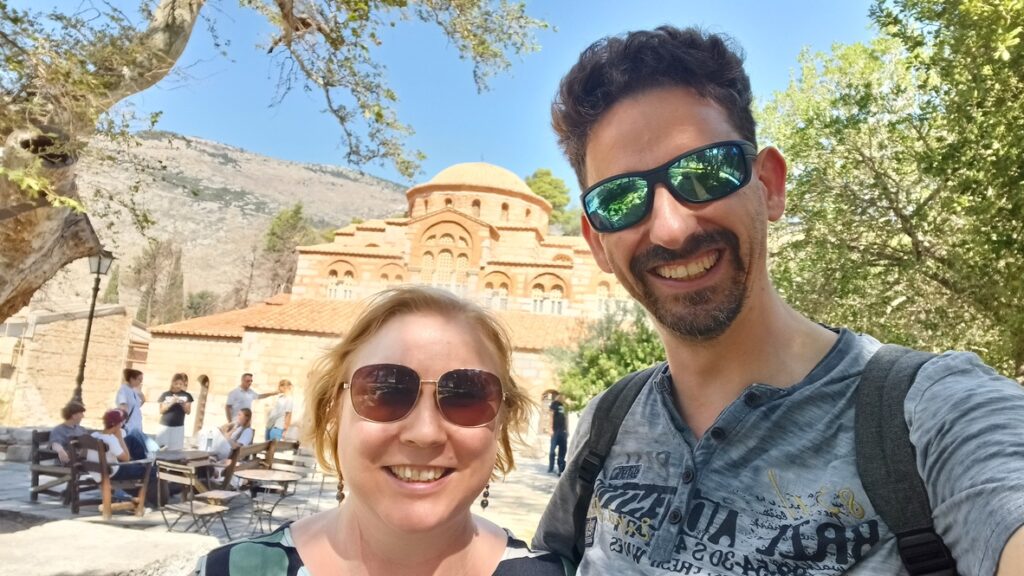 Neben ein paar kleinen Fotostops halten wir am Kloster Hosios Loukas. Dieses gehört, Achtung Überraschung, zum Unesco Weltkulturerbe. Es handelt sich hierbei um ein Kloster aus dem 11. Jahrhundert, das im Byzantinischen Baustil errichtet wurde. Erst durchstreifen wir alle zugänglichen Räume des Klosters.