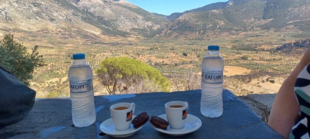 Anschließen genießen wir die Aussicht mit einem kalten Wasser und einem Espresso.