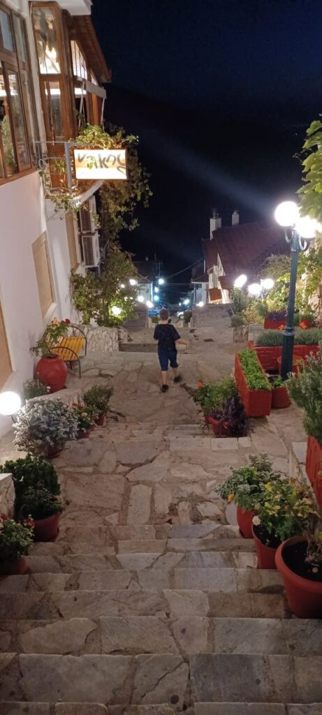 Jetzt wollen wir noch etwas Delphi erkunden und machen uns zu Fuß auf den Weg. Es wird hier sicher auch eine schicke Taverne für uns geben. Bei der Taverna DION werden wir fündig. Sowohl die Plätze als auch die Gerichte sind schnell ausgemacht. Neben den obligatorischen Teller Tzaziki und Rotwein gibt es heute Fleischbällchen und Bifteki. Die Fleischbällchen haben es auf ein Foto geschafft, beim Bifteki ist irgendwas schief gelaufen 🙂 Als der Gedanke zum Foto kam, war es schon verschwunden :). Muss wohl sehr lecker gewesen sein.