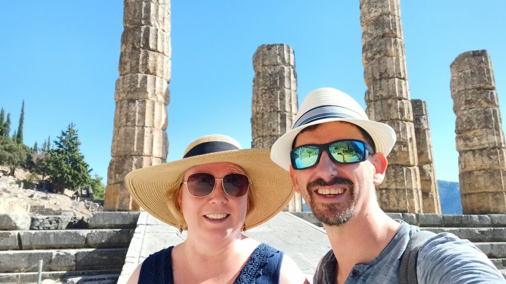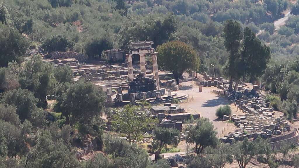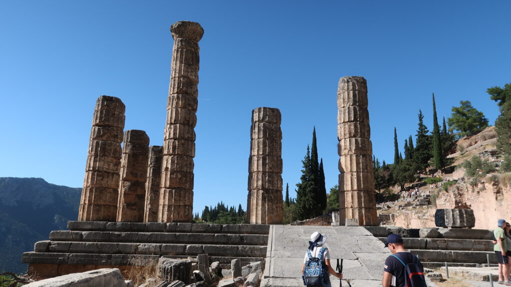 Ein Stück weiter oben landen wir dann beim Apollontempel, in dem auch das Orakel von Delphi tätig war. Wie wir erfahren, ging es auch damals höchst seriös vor. Leute mit viel Geld haben individuelle Antworten bekommen. Das günstige Pauschalangebot beinhaltete nur Ja/Nein-Fragen die in Form von weißen und schwarzen Bohnen ausgelost wurden. Dieses Modell hat bis heute in Form von Astro-TV überlebt 😀