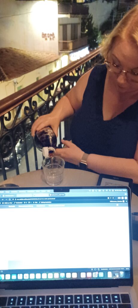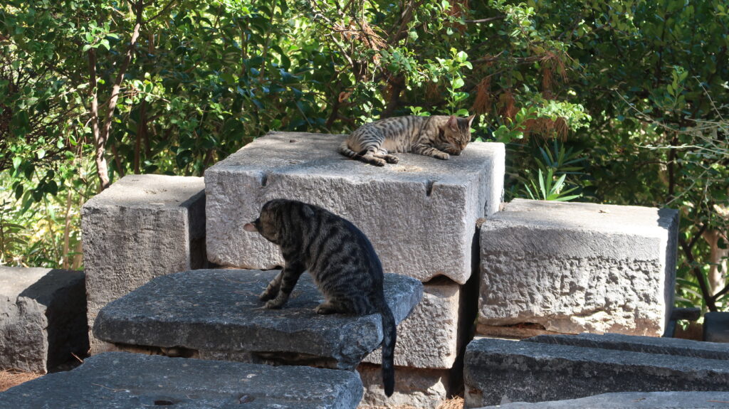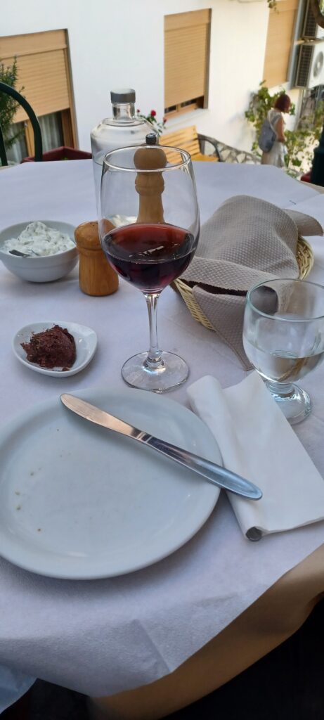 Mittlerweile ist es fast 14:00 Uhr und wir begeben uns leicht geschafft durch die Sonne nach Hause. Auf dem Heimweg ergattern wir noch eine Nobsi (Profis kennen den Namen 🙂 ) für den Kühlschrank und eine Flasche örtlichen Wein für den abendlichen Balkonaufenthalt gibt es auch noch. Auf dem Heimweg kommt es häufiger vor, dass Grits Stimme ein bisschen in die Höhe schnellt. Das liegt sehr häufig an süßen Katzen, die hier überall rumlaufen. Wir einigen uns darauf, das anschauen ok ist, mehr aber nicht. Zur Not habe ich auch Taschenkontrollen angedroht 🙂