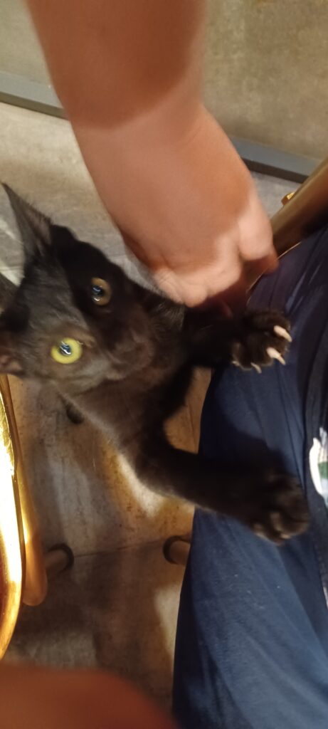 Nachdem wir alles aufgegessen und ausgetrunken haben, kommt überraschenderweise der Besitzer auf uns zu und stellt uns noch einmal die gleiche Menge Wein auf den Tisch (aufs Haus) Nun ja, dann müssen wir wohl weiter trinken. Der Wein ist sehr lecker und die Katzen, die hier rumlaufen sind extrem süß. Also starte ich beim Verlassen des Grills die erste Taschenkontrolle. Die Katzen müssen leider hier bleiben 😉