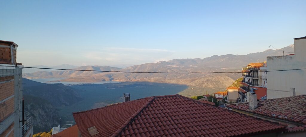 Guten Morgen Delphi, heute heißt es leider Abschied nehmen. Gegen 8:30 gehen wir zum Frühstück. Der Ausblick und das Wetter sind schon wieder toll. Kurz vor 9:00 Uhr rollen wieder die ersten Busse vor unserem Fenster entlang. Der Check-out ist schnell erledigt. Jetzt müssen wir nur noch das Auto ausparken. Das geht natürlich so, wie wir reingekommen sind in unsere Ecke. Mit ganz viel Lenken 🙂