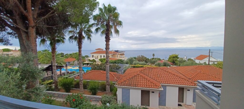 Das Frühstück ist griechisch gewohnt sehr lecker. Neben herzhaften Sachen gibt es sehr viele Leckereien, die probiert werden wollen. Diese schaffen es gewöhnlich nicht auf die Fotos, da wir sie erst probieren, dann aber keinen Nachschub für das Foto holen können. Sonst platzen wir 😉