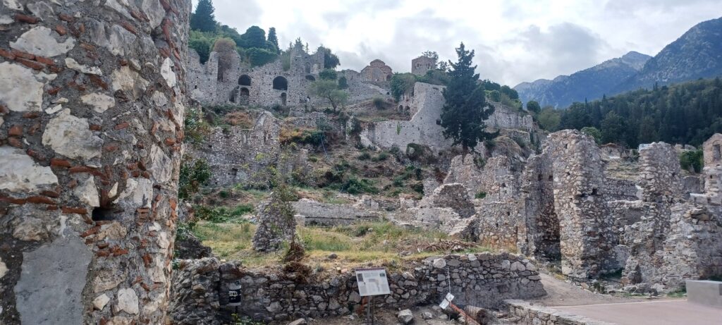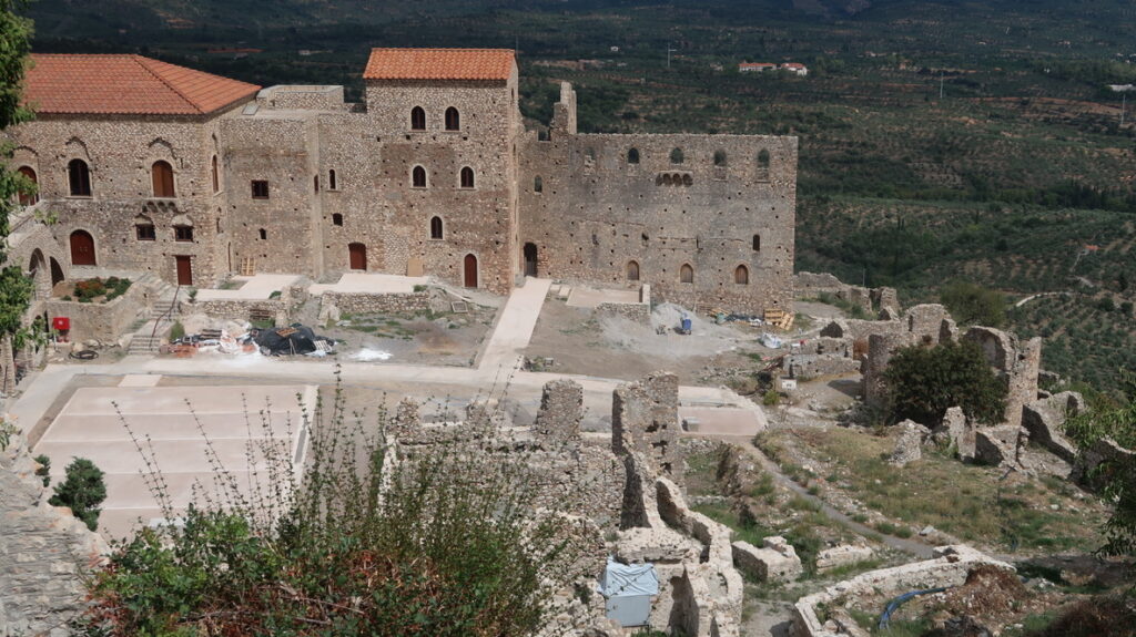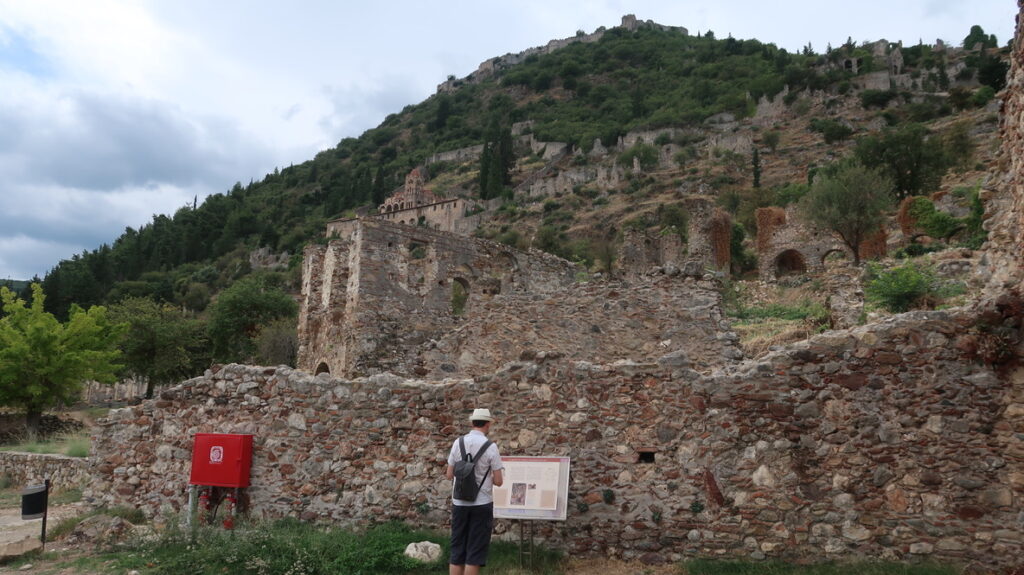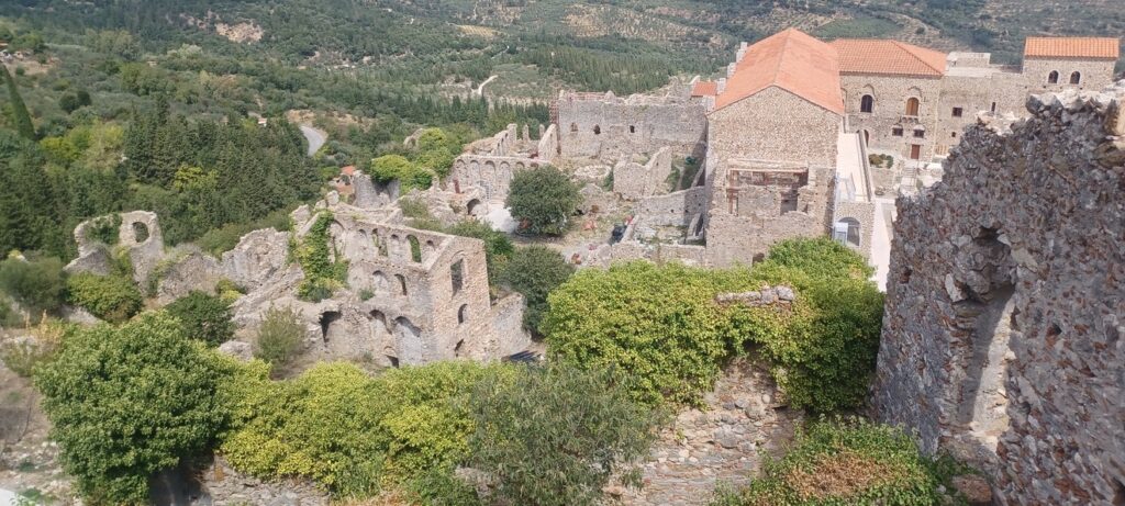 Dann geht es auf der anderen Seite ins Tal der Spartaner. Nach einiger Zeit erreichen wir gleich den Eingang von Mystras. Hier folgt gleich eine Überraschung. Dieses Wochenende sind die Europäischen Tage des Denkmals. Das heißt für uns, dass wir heute kostenlos (statt der 20€ pro Person) auf das Gelände kommen. Sobald wir das Gelände betreten haben, ist unser Gedanke: Oh, das ist ja ganz schön groß hier.