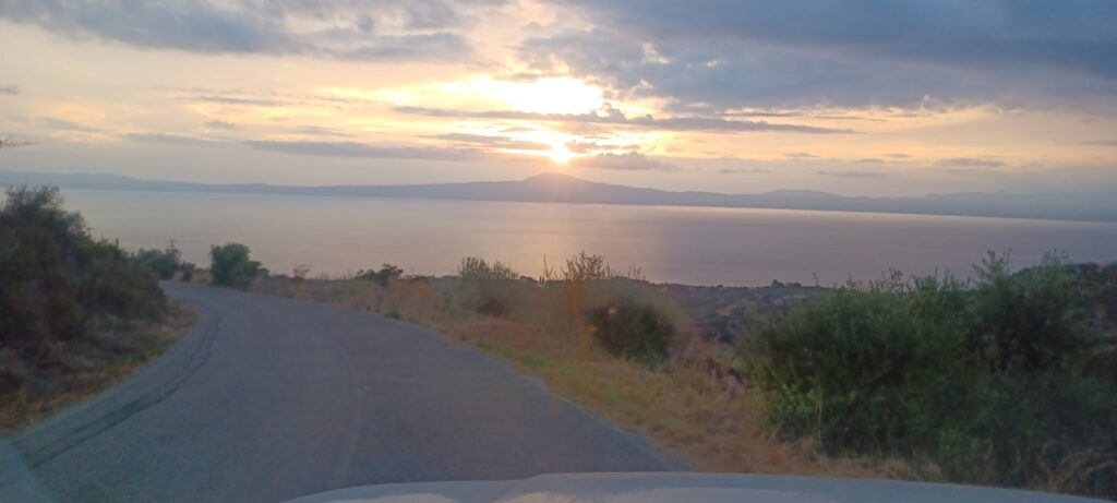 Wenn wir ganz ehrlich sind, freuen sich unsere Füße über den Wegfall von Sparta 😀 Wir beschließen, noch eine kleine Rundreise über Gythio (Γύθειο) und Areopoli (Αρεόπολη) zurück zum Hotel zu unternehmen. Überraschenderweise ist die Küstenstraße alles andere als eine normale Küstenstraße (viele Orte sonst aber immer am Wasser entlang). Diese Küstenstraße geht zum Wasser, dann wieder hoch auf die Berge. Die Strecke geht durch tolle Bergdörfer, die hier vom Baustil eher an Mystras erinnern als an Kalamata. Das Lenkrad steht auf den ca. 100 km Rückweg keine Sekunde still.
